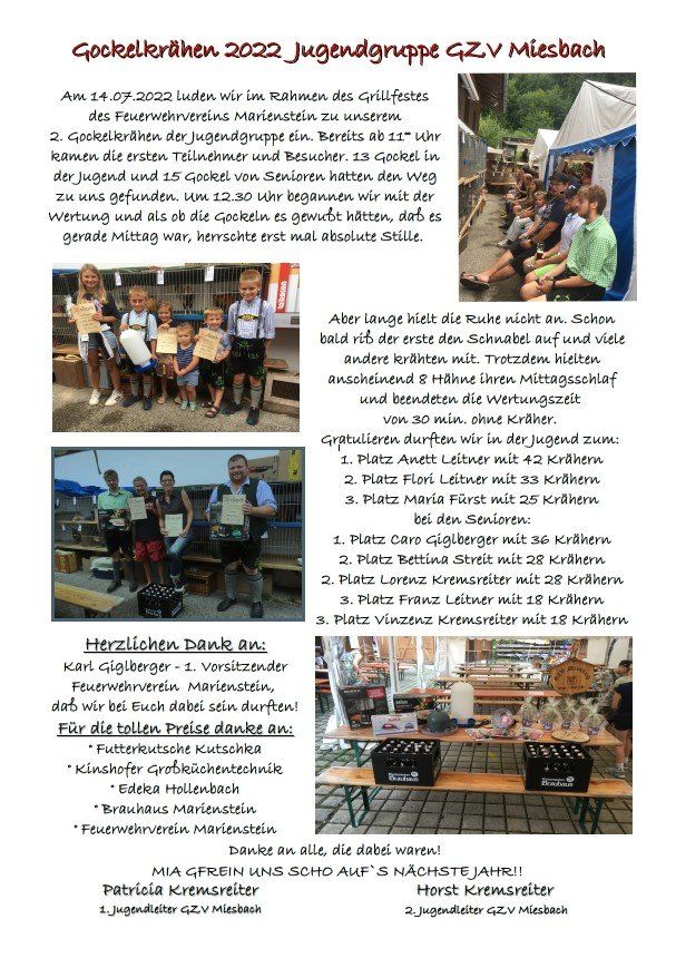 2. Gockelwettkrähen der Jugendgruppe GZV Miesbach