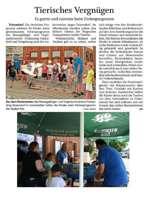davon 20 Wassergeflügel, 77 Hühner, 35 Zwerghühner und 67 Tauben gemeldet.