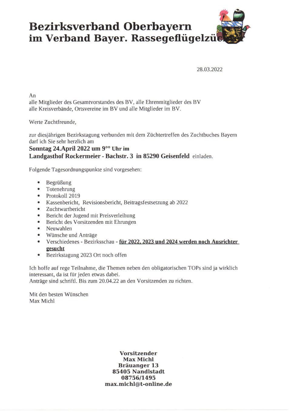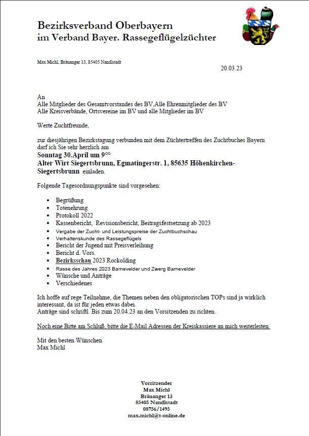 Am 28.04.2024 wurde auf der Bezirksversammlung des BV Oberbayern auf Gut Forsting in Forsting